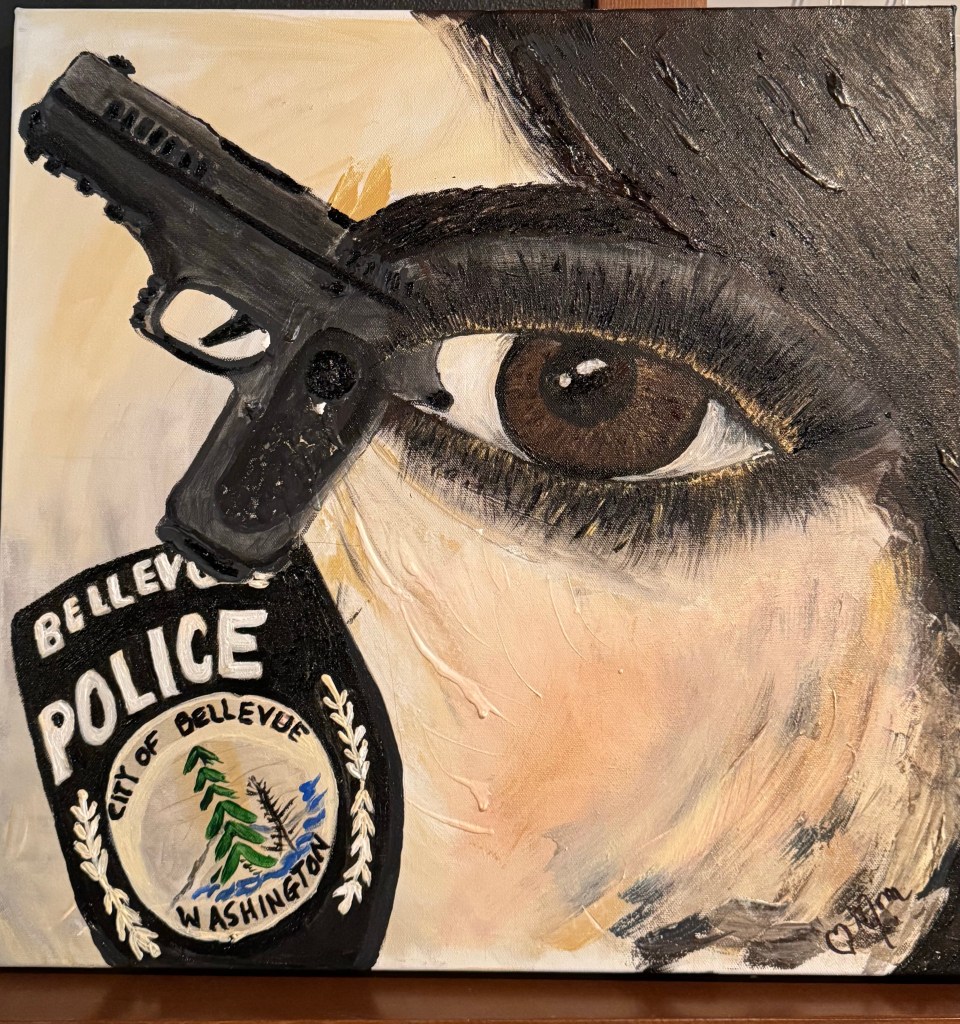 Here is my painted expression highlighting her new courageous journey. May she always be safe protecting our communities with many brave people like her and may her success in all things bring her and her family happiness and a legacy of courage that continues in for generations.
