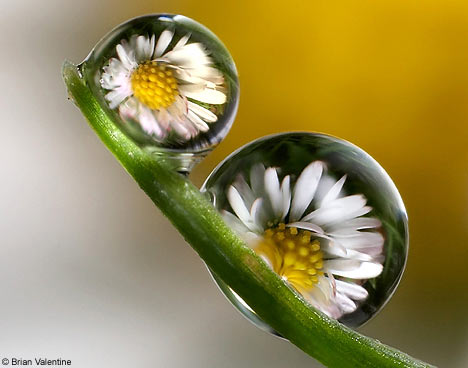 Looking into the drop you can see your own reflection, smaller than the reflection on a lake but amazing it still shows the entire beauty of your face.